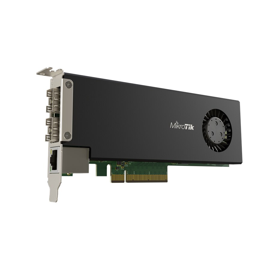 The MikroTik smart PCIe network interface card, a remarkable product that seamlessly combines the functionality of a fully-fledged router with a two 25 Gigabit PCIe Ethernet adapter. This unique card allows you to create 25 Gigabit networks, making it an ideal space-saving solution for your server room.
