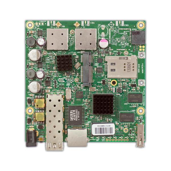 ISP Supplies supplies the MikroTik RouterBOARD 922UAGS-5HPacD (US) with 720Mhz CPU, 128MB RAM, 1xGigabit Ethernet, 1xSFP cage, 1xminiPCI-e, 1xSIM, onboard 802.11ac two Chain 5Ghz wireless, and RouterOS L4.