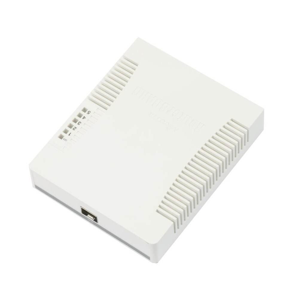 The RB260GS is a small SOHO switch. It has five Gigabit Ethernet ports and one SFP cage powered by an Atheros Switch Chip.