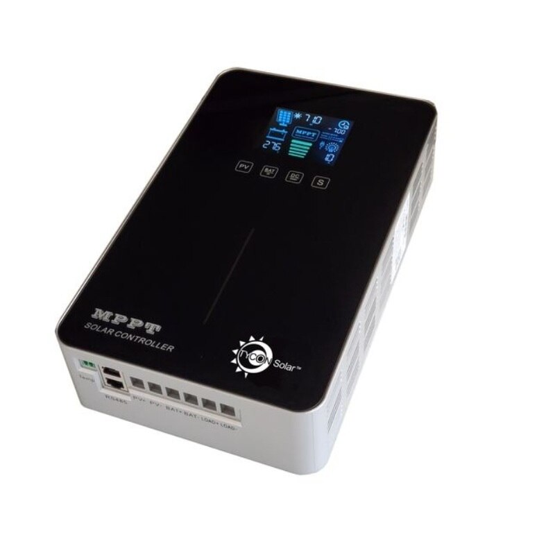 The Tycon Solar™ TP-SC48-60P-MPPT solar controllers are MPPT (Maximum Power Point Tracking) temperature compensated battery charging controllers. The battery temperature probe cable is included. The controllers are auto-ranging to accommodate 12V,24V,36V and 48V battery systems. They are designed to charge Sealed (AGM), GEL, Flooded, and Lithium batteries. They also have a USER setting for customizable battery charge settings. They have an integral color TFT LCD display that shows Battery Volts/Amps/Watts, Battery Level, Battery Temperature, Load Volts/Amps/Watts and Solar Volts/Amps/Watts. The display also shows the current time and charge mode (CC-Constant Current, CV-Constant Voltage and CF-Float Charge) or Standby (Running from battery). The display turns off automatically to save power. Tap the screen to turn on.