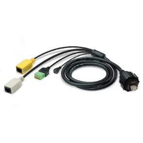 The UniFi Video Camera PRO Cable Accessory, model UVC-Pro-C, is designed for use with the UVC PRO. In addition to the convenient Reset button, the UVC PRO Cable Accessory provides Ethernet, Audio In/Out, and mFi RJ45 connectors.