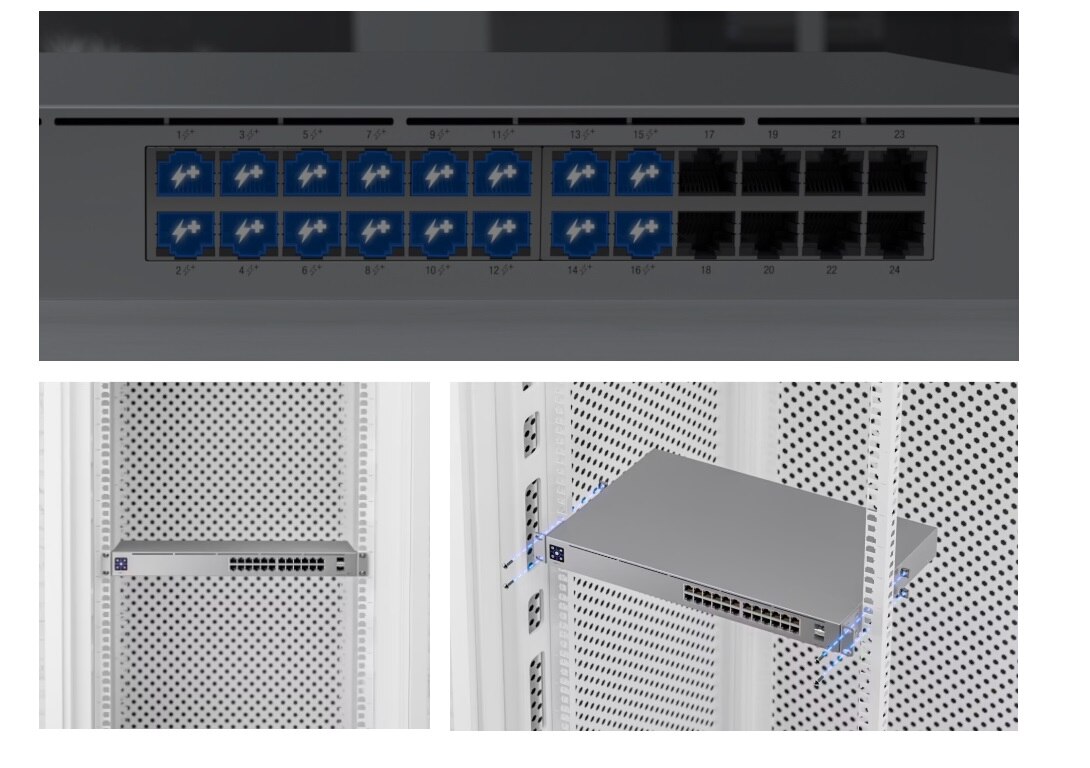 - (16) Gigabit RJ45 ports with 802.3af/at