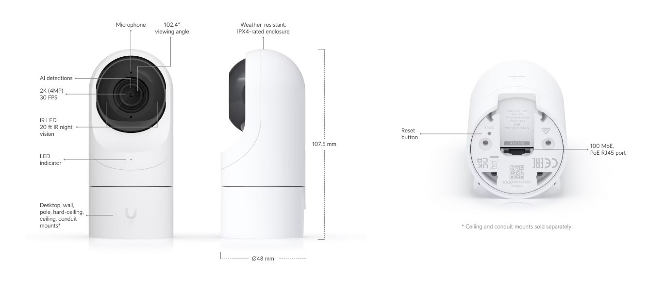 MountingDesktop, wall, pole, hard-ceiling (Included)