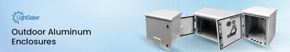 Hardy LSO outdoor aluminum enclosures are manufactured for applications requiring a lightweight, yet tough weatherproof enclosure to house various electronics. Made from aluminum, the 6RU (24” wide and 24” deep) or 12RU (24” wide and 24” deep) pole mount cabinet or enclosure is fully assembled and has a design that allows natural wind cooling via filtered vents on the front door. It features an AC110V 60Hz dual fan kit on the top roof with a temperature controller. In addition, the LSO outdoor aluminum enclosure features a water and dust-proof polyurethane door joint strip for increased protection. It comes with wall and pole mount accessories, an adjustable 19” equipment rail with cable rings, and grounding wires. Besides, the LightSaber 14RU (26” wide and 24” deep) enclosure features a 3-point locking system and a DC48V 40W/K heat exchanger for a secure thermally-controlled environment. MBSI WAV is offering certified LightSaber cabinets and enclosures at the best prices.
